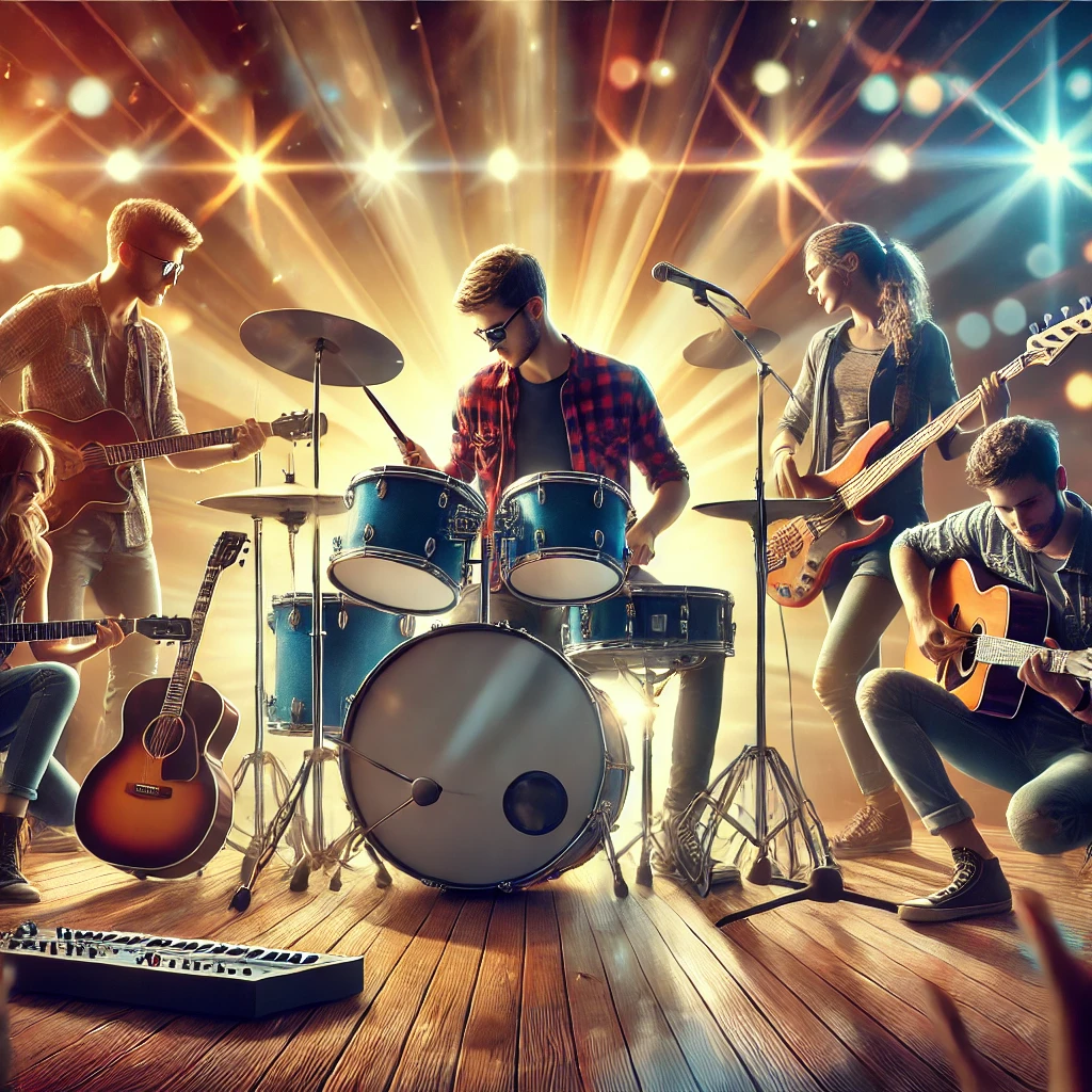 Une scène dynamique montrant des étudiants engagés dans un atelier de batterie.